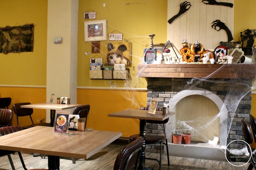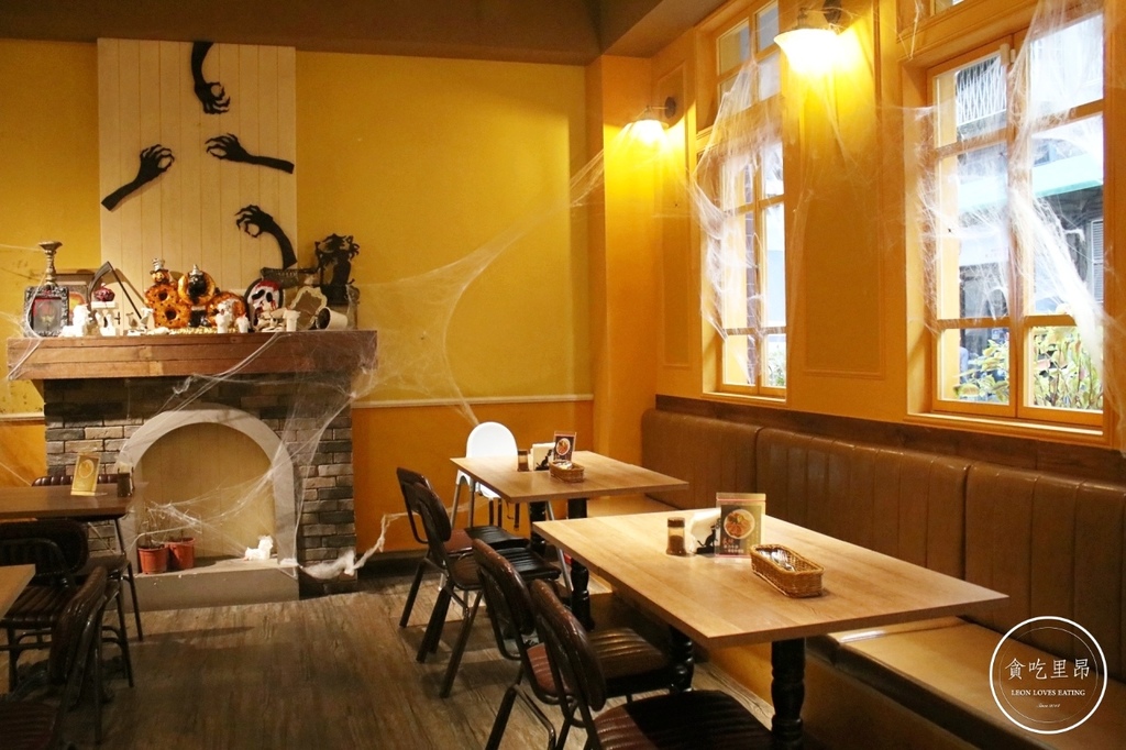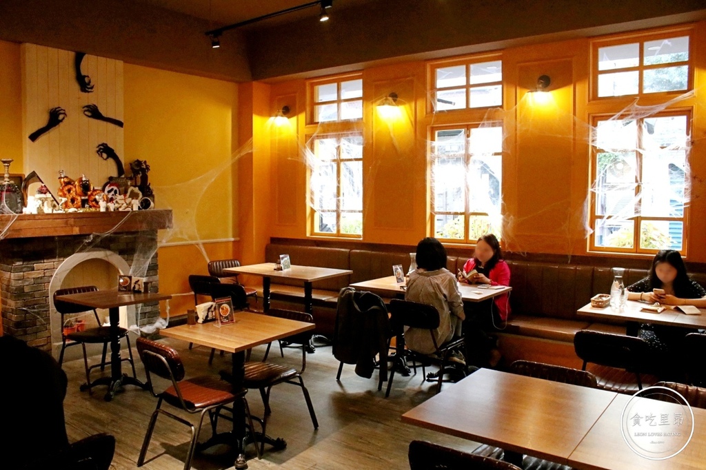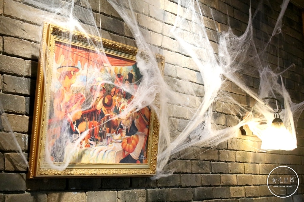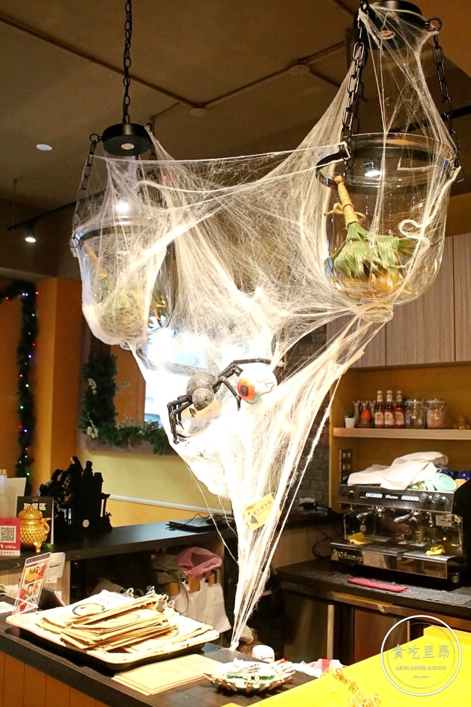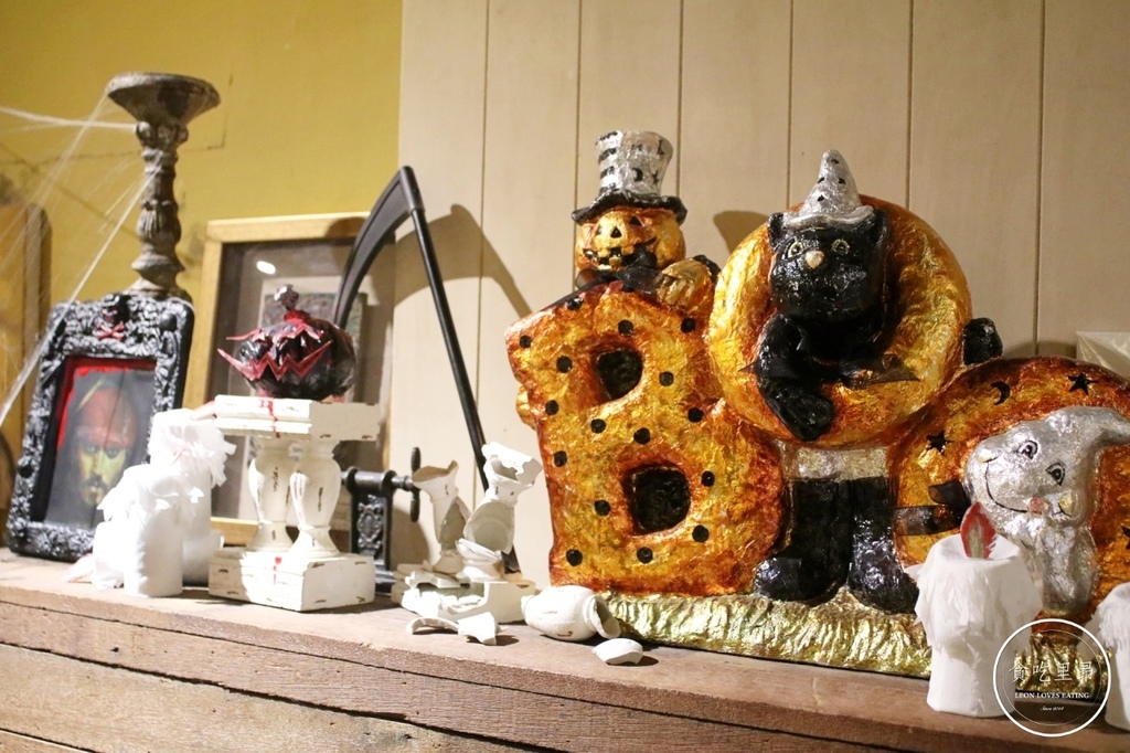 為了響應當時萬聖節的主題氛圍,店家很應景的將店面裝潢成了萬聖節風格,牆上掛滿蜘蛛網和蝙蝠的裝飾,看得出店家的格外用心與巧思~